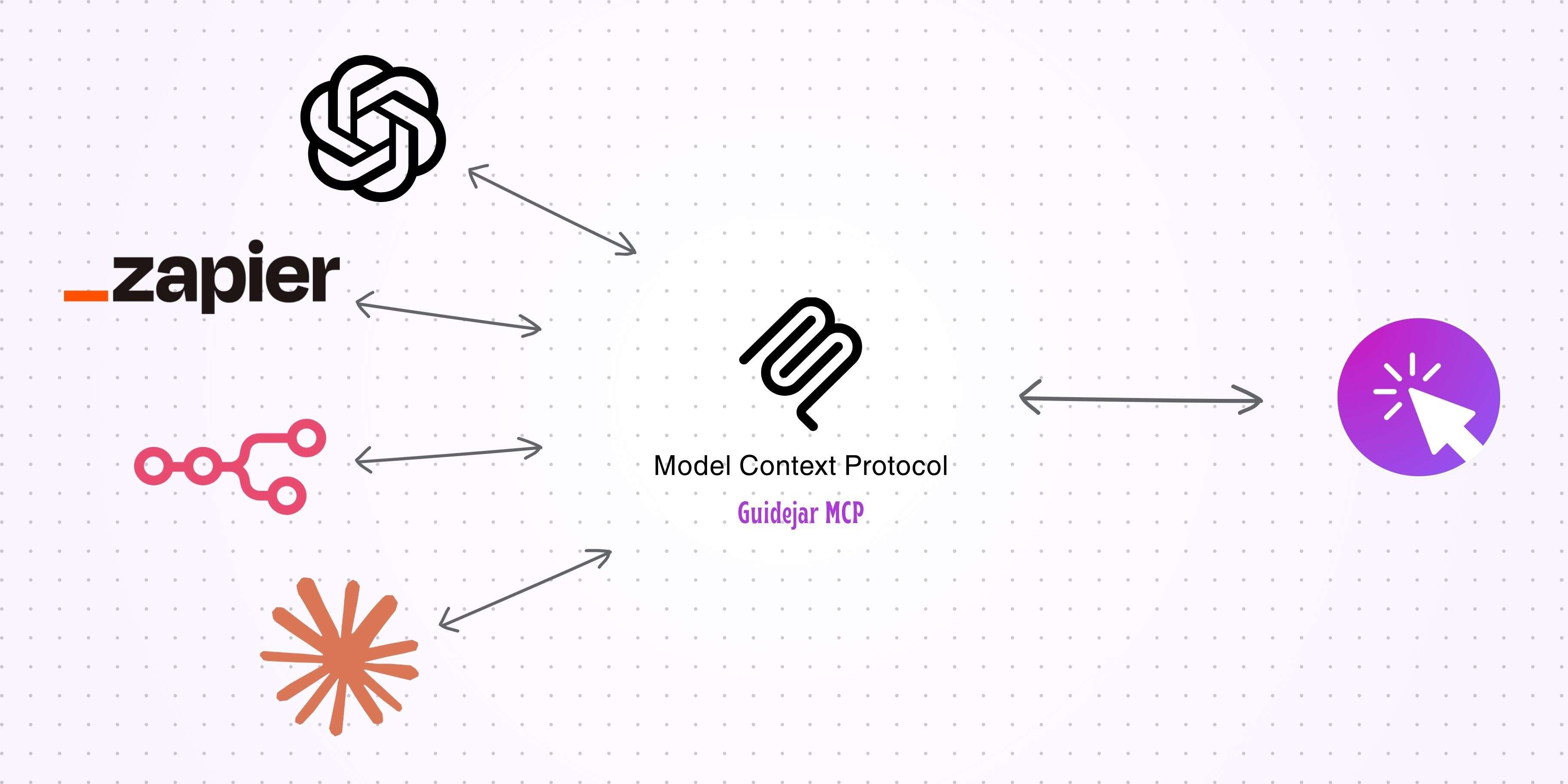 We’ve developed Guidejar's very own MCP (Model Context Protocol) server making it possible to connect Guidejar directly to AI tools like ChatGPT, Claude, n8n, Zapier and other MCP-compatible platforms.